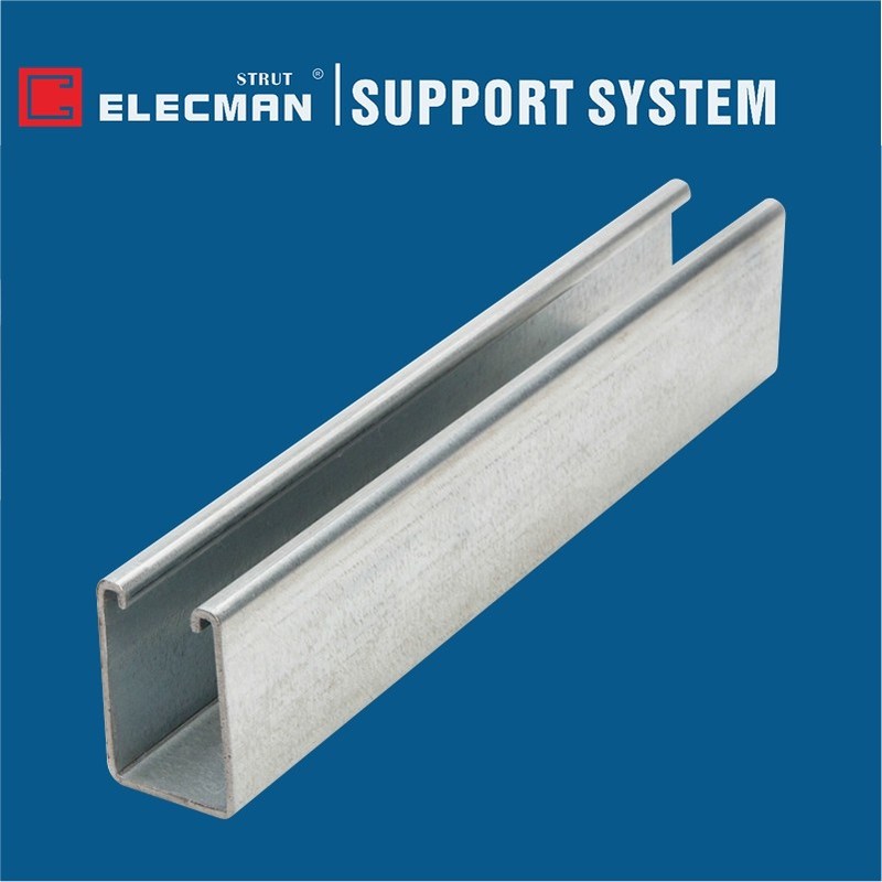 ELECMAN® 1-5/8” * 2-7/16” (41*62mm) galvanizaram o canal de aço ES-150 do suporte, e todos membros de moldação restantes do canal do suporte, são formado a frio do baixo aço da tira do carbono, com um entalhe contínuo ao longo de um lado, e das bordas inturned, formando uma forma aberta de “c’. O canal de Inturned afia o trabalho conjuntamente com o hardware do canal (porcas do canal, porcas da mola, porcas do parafuso prisioneiro, arruelas, etc.) que textured sulcos, para criar um ponto de conexão mais segura.