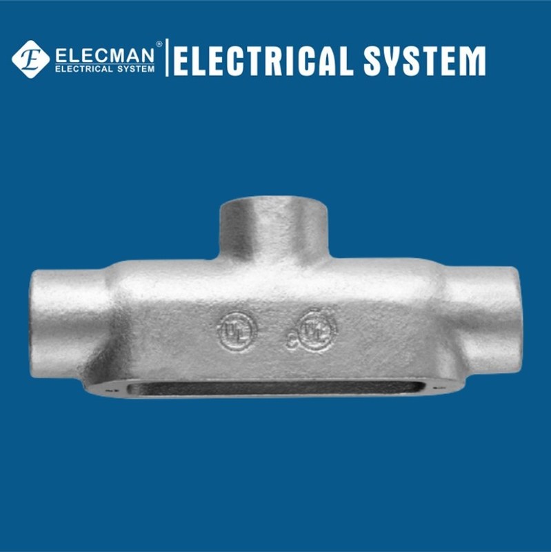 O ® de ELECMAN forma 5 o ferro maleável 1/2” - 4" corpos da canalização de IMC/Rigid são um componente de um sistema prendendo elétrico industrial. Os corpos da canalização agrupam fios junto para salvar o espaço dentro de uma unidade elétrica. A fiação corre através das canalizações e dos corpos da canalização para guardar contra a corrosão. Igualmente permitem que você manobre o sentido e o empacotamento de um grupo de fios. Os corpos da canalização vêm em uma variedade de tamanhos, materiais e resistência de umidade.