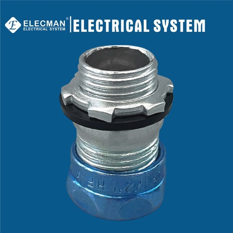 O UL eficiente e seguro de ELECMAN® alistou a característica impermeável de aço do conector de EMT um tipo conjunto da compressão e fornece uma conexão apertada impermeável e concreta para impedir dano dos elementos e para assegurar o elevado desempenho continuado. A construção de aço áspera com um revestimento chapeado zinco ajuda a integridade da conserva; os conjuntos incluem a contraporca e a gaxeta de aço. Firmemente canalizações finas bond usadas da parede de EMT às caixas elétricas ou aos cercos. Disponível nos tamanhos de 1/2” a 4"; O UL alistou.