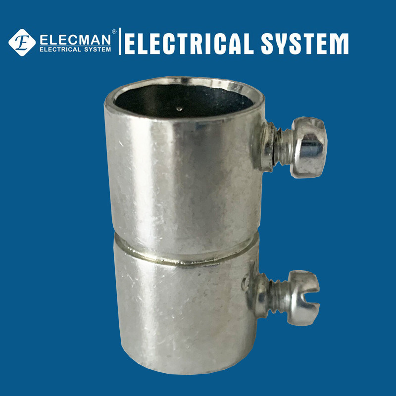 O tipo de aço do parafuso de fixação dos acoplamentos de ELECMAN® EMT é usado em lugar secos para conectar junto as extremidades de duas canalizações de EMT para estender o canal adutor. A construção de aço assegura a proteção mecânica e a conexão entre uma canalização a outra.